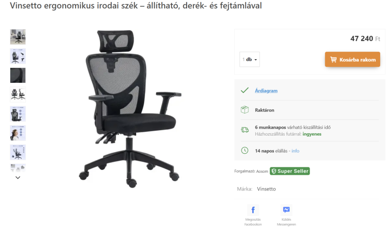 Tudom hogy egy jó szék drága, otthon van is drágább székem amibe egész nap lehet ülni. Azonban a munkahelyen egy 50k-s keretet adtak, hogy Pepitárol válasszak raktáron lévő széket