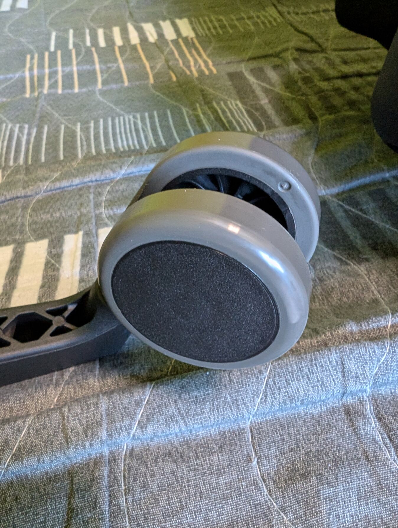 A karfákat jó lenne picit magasabbra is tudni emelni, mert nem ér fel az asztalig nekem. Viszont ha olyan magasra lehetne állítani akkor begurulva az asztal alá, hintázáskor (mivel megemelkedik az ülőlap, karfa eleje picit) a karfák nekiütköznének az asztallapnak. Gondolkozom valami puha szivacs rendelésében a karfákra, hogy vagy 2cm-rel magasabbak legyenek kipróbálni milyen.