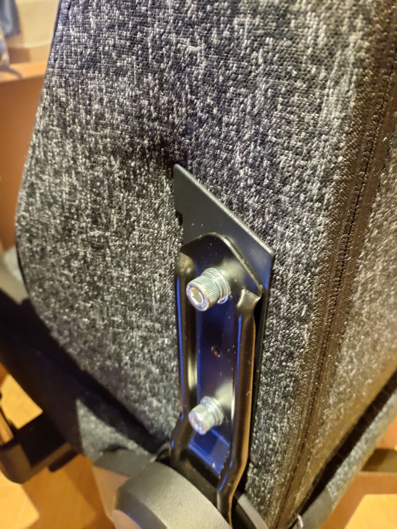 Tetszenek az olyan részletek is, hogy a háttámlán van egy fém lap, ahol az üléssel össze csavarozod így az ülő rész kis fém karjai nem közvetlenül a szövettel érintkeznek, ezért feltehetően az apró surlódások a mozgással nem fogják kikezdeni a szövetet a csatlakozásnál.