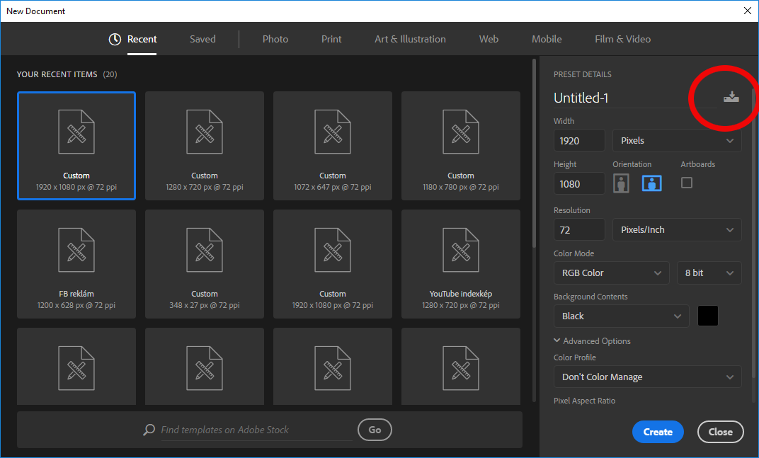 Igazából még arra se jöttem rá, hogy a lópikulába menthetnék egy saját sablont, hiszen még mentés gomb sincs sehol! Hiába nyitogatom az Advanced opciókat, nincs olyan, hogy mentés. Recent van, meg az előre gyártott sablonok.