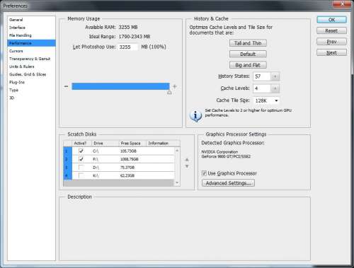 Na ez itt a másik problémám. Ott én már felnyomtam rég 100%, a scratch disk-re ketőt állítottam be, egyiken 100GB free space a másokon 1Tb szabad. Viszont az Available RAM -nál (rendelkezésre álló, vagy elérhető ram vagy hogy van magyarul) csupán 3255MB van. Na ez hogy is van? Ezt már végkép nem értem.