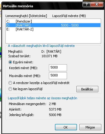Nekem is volt hasonlo problémám Virtuális memoriánál állitotam rajta. (Rendszer tulajdonságok---Speciális----Virtuális memoria)) És ahova dolgozik a Ps pl D meghajtó és (Egyéni méret-::
