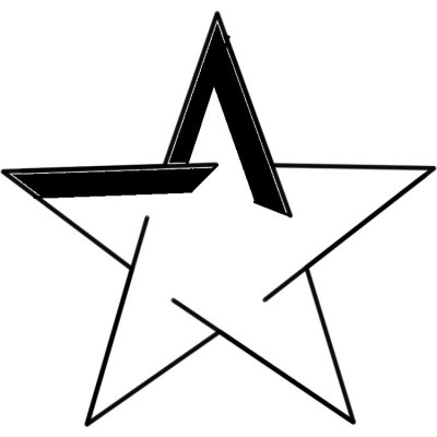 A lényeg: 750x750-es méretben kellene, transparent háttérrel, fekete színben. Teljesen szabályos ötágú csillagot szeretnék, ami különlegessé tenné, az az, amit pirossal is kiemeltem, hogy a csillag minden ágába belóg az előző ág egyik szára. Amit illusztrálni próbáltam, hogy ennek a szárnak milyen legyen a vége, csak sajnos ezt nem tudtam Painttel megcsinálni a kicsi ábrán, ezért "nagyítottam ki". Természetesen a csillag körvonalát vastagabbra szeretném kicsit, hogy látsszon, hogy a belógó szár vége ilyen ferde.