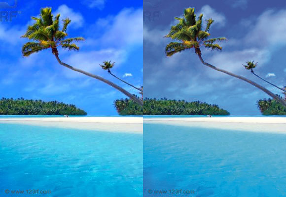 ahogy látható, a világoskék színek teljesen eltűntek a képről - mintha beborult volna az ég.
