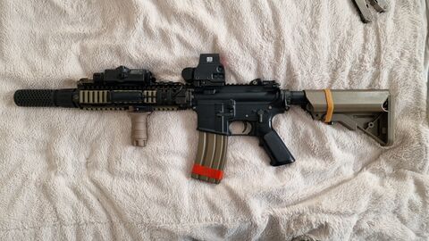 Megjött ma az aliról megrendelt Holy Warrior holosight. Nagyon baba, minősége valami elképesztő jó, egy lapon se lehet említeni a 40 euros Taiwangun-os fosokkal. A fényereje is kiemelkedő, ma szikrázó napsütésben próbáltam, simán látszik a célkereszt és az üvegben sem magamat látom. Az olcsó verziókkal ez a két gond volt, plusz hogy a GBBR meg a Marui NGRS is szétrázta őket pár játék alatt. Ez az igazi fegyvereket is bírja. Nem volt olcsó, de megérte, mert ezt a fajta irányzékot szeretem iagazán, a T2 csak szükségmegoldás volt nekem. Olvastam róla teszteket, szinte meg sem lehet különböztetni a valódi Eotec féle holo-tól annyira jól sikerült replika.