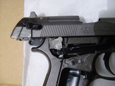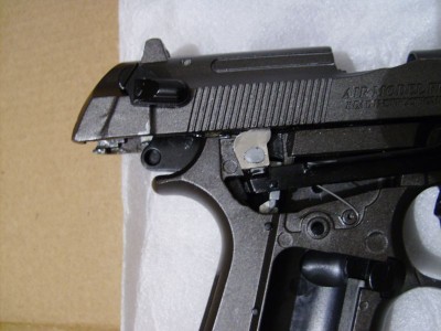 "így elénk tárul a pisztoly belső része, ami nagyrészt jó minőségű spiáterből van"