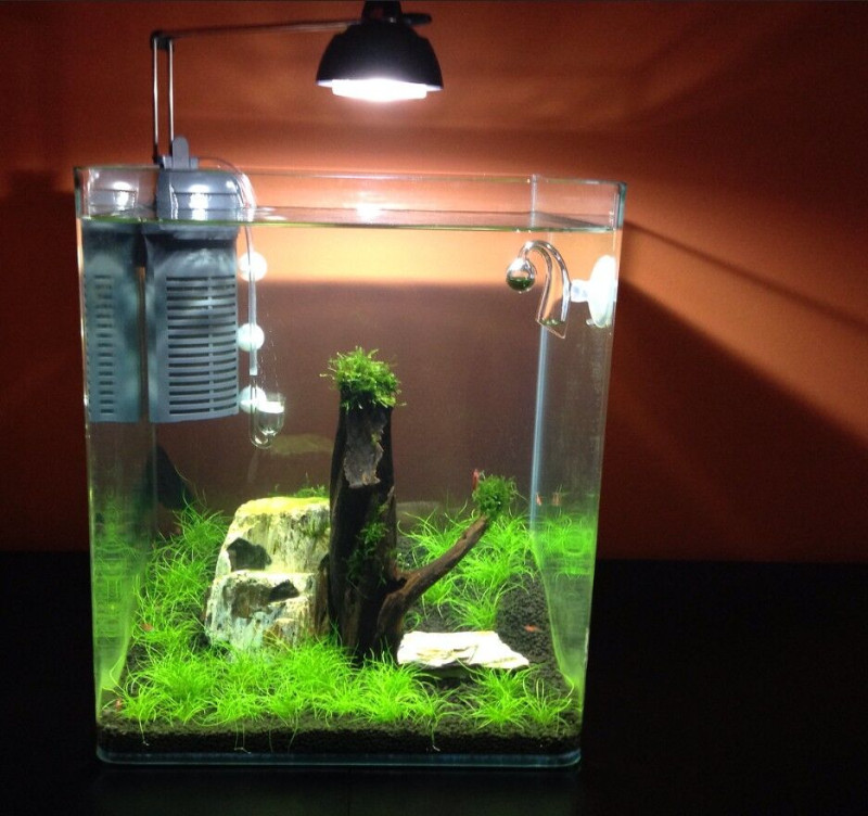 Lámpa, aliexpressen találsz házi növényt/füvet növesztő lámpát, körtét, 5-10 euró. Kisebb akváriumhoz akár egy usb-s is elég. Szűrő nem föltétlen kell, de ha mégis akkor azt is onnan, van nano hob vagy külső szűrő nagyon olcsón.
