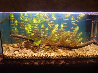 Először talán a garnélákat tedd bele, aztán rá egy hétre a halakat. -