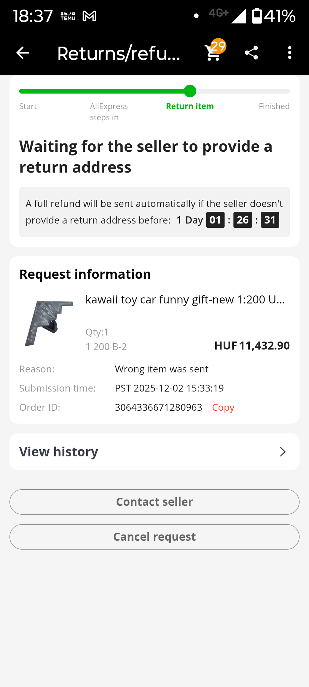 Aliról rendeltem egy Nuotie gyártmányú B2-es repülőgép modellt, de kaptam egy Jasontutu gyártmányú B2-est, ergo nem a fotón szereplő repcsit kaptam. A terméket 2 napja kaptam meg és le is jelentettem az átvételt ami itán egyből indítottam egy viszatérítést amit ugyan nem bizonyítottnak tekintettek, de felajánlották a visszaküldés/teli visszazérítést amibe bele is mentem. Felvettem a kapcsolatot az eladóval aki inkább felajánlotta a kompenzációt (meglepően segítőkész volt)visszaküldés nélkül amiben meg is egyeztünk.