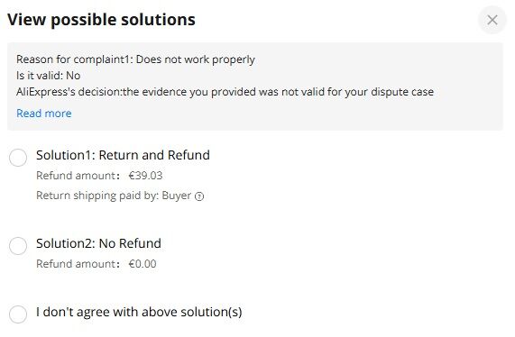 AliExpress's decision:the evidence you provided was not valid for your dispute case
