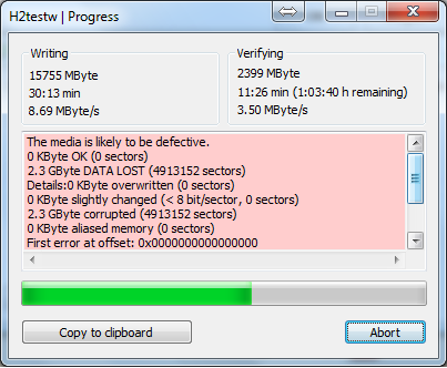 A BT eszköz jónak tűnik, az sd kártyás lejátszáson kívül mindent teszteltem rajta, a hangzással kapcsolatban nincs mással összehasonlítási alapom, de ez jobb, mint amire számítottam.A kérdésem: a hozzá kapott 16 GB (-nak hirdetett) sd kártyát alávetettem egy h2testw-s tesztelésnek, most éppen itt tart a dolog: