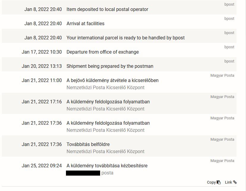 Nem kell megkérdeznem, reggel 9 körül szokott megérkezni a járat, ehhez mérten stimmel a 09:24 órás bejegyzés, "Küldemény továbbítása kézbesítésre". Én délután fél 3 felé voltam a postán, előtte már járt a kézbesítő, de csak leveleket hozott. Még egyszer mondom, ismerem és megbízok a postán csücsülő hölgyben, nem tudok rá okot, hogy miért mondta volna azt, hogy nem jött ma csomagom, ha tényleg ott lett volna nála.