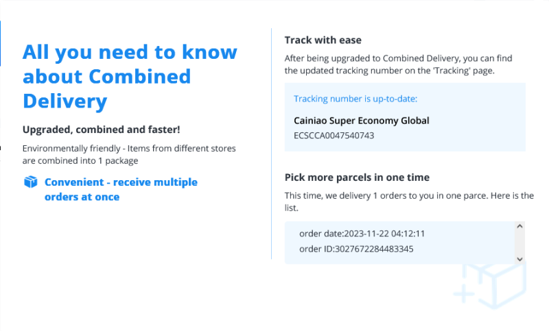 1db rendelést összekombinálta önmagával + Cainiao Super Economy-t változtatta Cainiao Super Economy Global-ra ami nekem ugye postai díjas lesz. -
