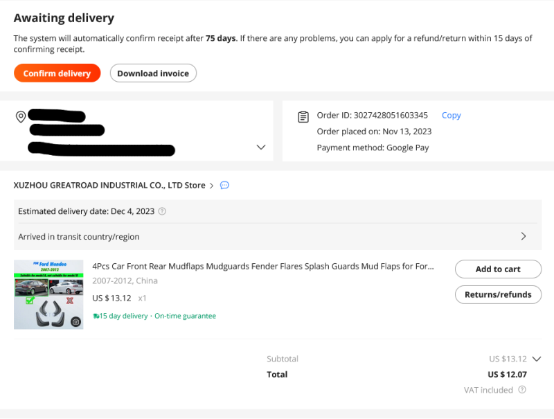 - megvárod amíg letelik a védelmi idő (az order details oldalon fent látod mennyi van még vissza) és azután indítasz dipute-ot (az idő lejárta után 15 napod van erre), hogy nem érkezett meg.