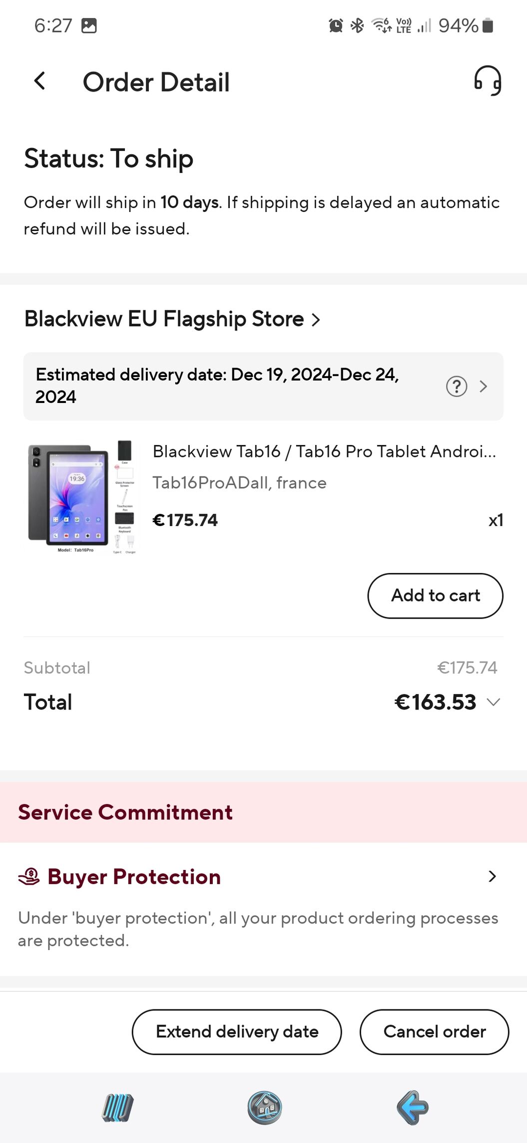 Rendeltem december 13. a Bleckview francia hivatalos shopjából. Szálításnak december 19.-24. ig volt megjelölve. Viszont még mindég nem adták fel a csomagot. Mart írtam neki a rendeléshez de még meg sem nézték. Ha esetleg nem küldenék mennyi idő eltelte után kérhetem vissza a pénzem?