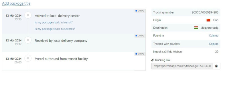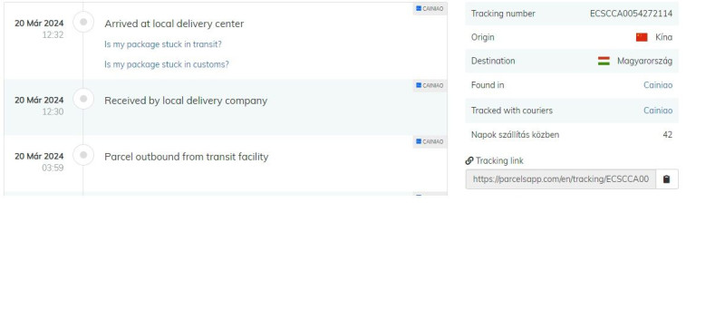 A képen látható bejegyzés alapján ácsorog a csomagom.