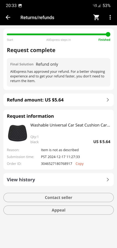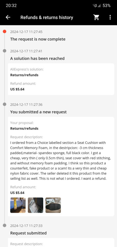Közben észrevettem, hogy csak letelt az a 10 nap a feladástól számítva , megírtam nekik a kifogásomat. 5 másodperc alatt jóváhagyták a refundot. Szerintem valami algoritmus nézi, mi van a kifogásban leírva (direkt beleírtam a :scam, fake, counterfrei szavakat