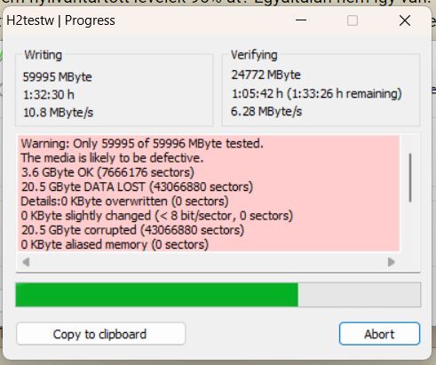 Még nem futott le a teljes teszt, de az már látszik, hogy az ígért 64 GB-ból csak kb. 3,6-4 GB a valós kapacitás