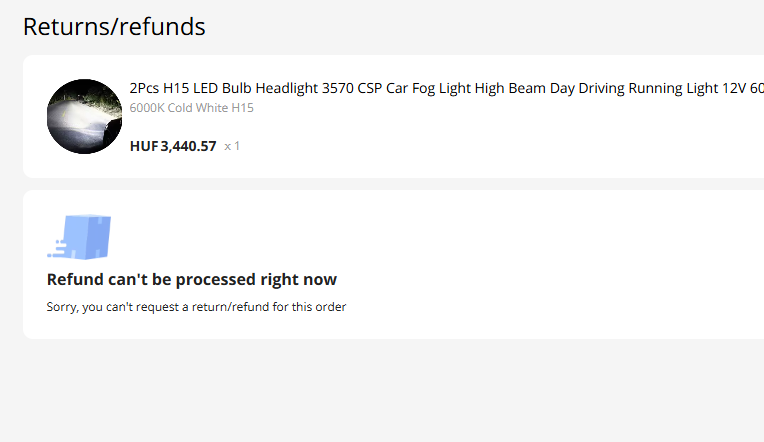 Kezdeményeztem a dispute-t, ali visszaírt, hogy a termék "free return" kategóriás, csak akkor kapom vissza termék árát, ha visszaküldöm.