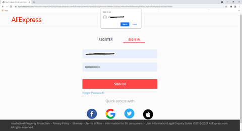 Az normális hogy Aliexpress bejelentkezésnél megjelenik a felhasználó/jelszó bekérő de plusz még felugrik egy kis Sign in as ablak Sign in meg Cancel gombokkal? Javascript-nek néz ki.