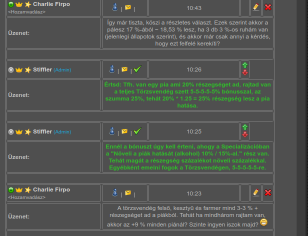 De a múltkor már volt erről szó, akkor a + részegségi %-oknál, pont ezt furcsáltam, hogy a sok +3 %-kal gyakorlatilag fele annyi piából kéne berúgnom... Ott írta, hogy nem összeadódik, hanem szorzódik, így növeli a végén a várható %-ot 1 piánál. Ugyanúgy működik, mint az esély növelés akárhol máshol, igazából mi máshogy képzeljük el, mint ahogy ő a képletet...