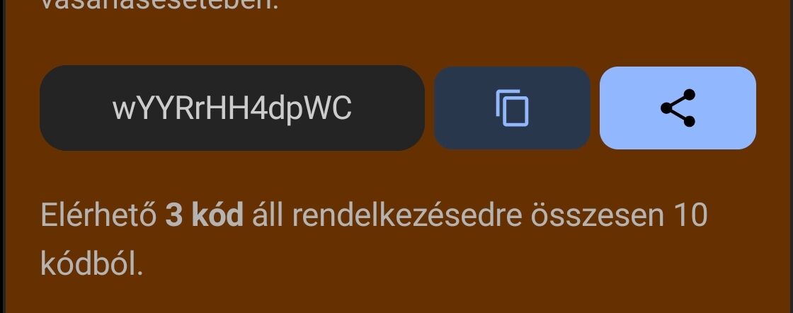 Kódom: wYYRrHH4dpWCMég van 3 lehetőség, most néztem meg: