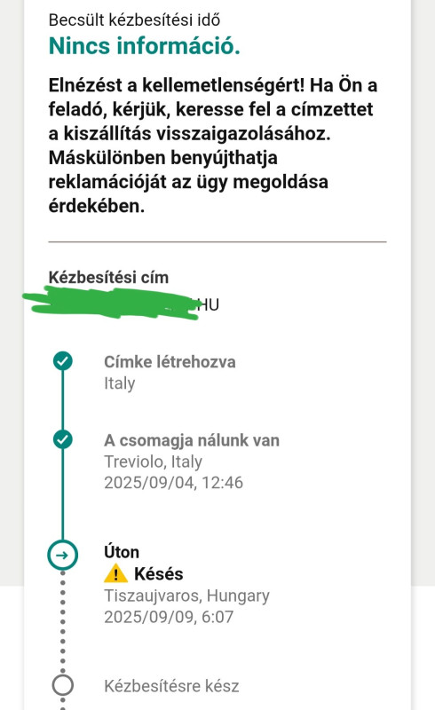 Nekem anno ugyanígy volt, majd jött hirtelen az email, hogy sikertelen kézbesítés, és leadják a legközelebbi kézbesítési helyen... Szerencsére nekem ez Budapesten csak néhány sarok volt, de így +1 napba telt, hogy megkapjam a Kindle Scribeom... hívni meg se próbáltak, simán csak nem akarta házhoz hozni.