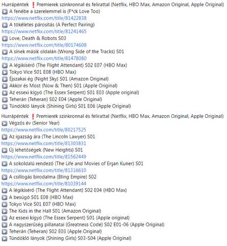 Trailerek mindenesetre legalább lesznek..de mivel az hbo az a legalja nálam, annál biztos jobb lesz..2 és fél hónap alatt 1 sorozatot és kb egy filmet tudtak szállítani ami érdekelt. doku semmi nincs, 4K csak mutatóba.. talán 20?? az alkalmazás meg egy vicc, angol esetleg magyar a szinkron..nincs kilépés gomb se, eszköz alapú tiltások, stb.