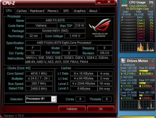 "Üzemel a 9370, egyelőre 1,44 V @ 4,8 GHz."