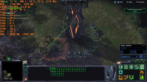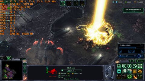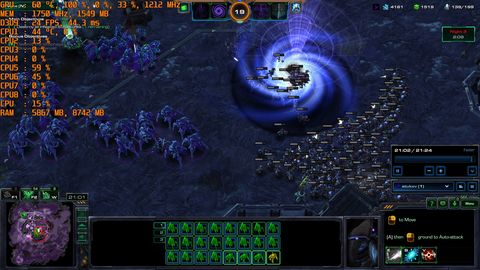 Nem véletlen van elég alacsony egység limit alapból az SC2-ben.Egyébként megnéztem, a legalacsonyabb fps-hez tartozó CPU terheltségek meglehetősen alacsonyak voltak, egyik magon se ment 50% fölé a terhelés.