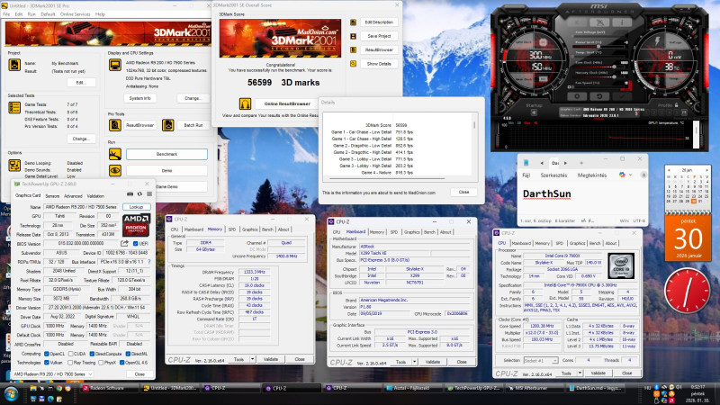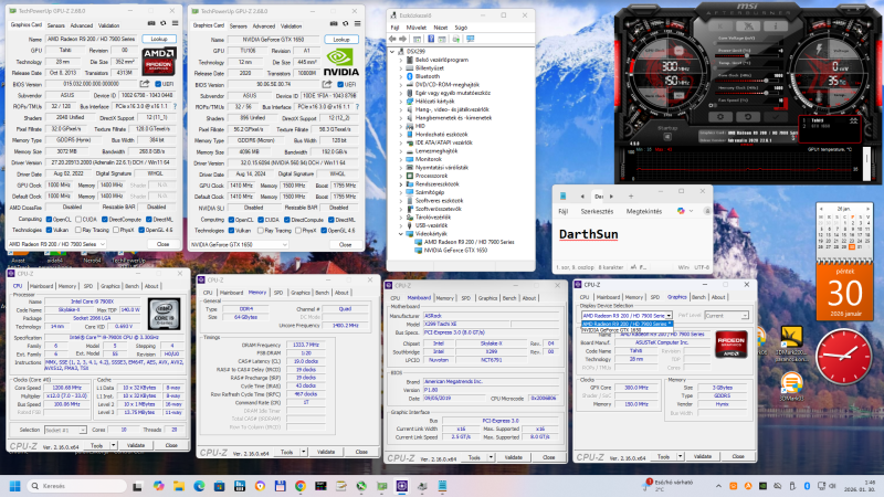 Érkezik a HD7970 3slotos szörnyecske. Még jó hogy az X299- hez 850W FSP- t választottam. A GTX1650 áramtermelő mellett, azért ennek már mérhető a fogyasztása.