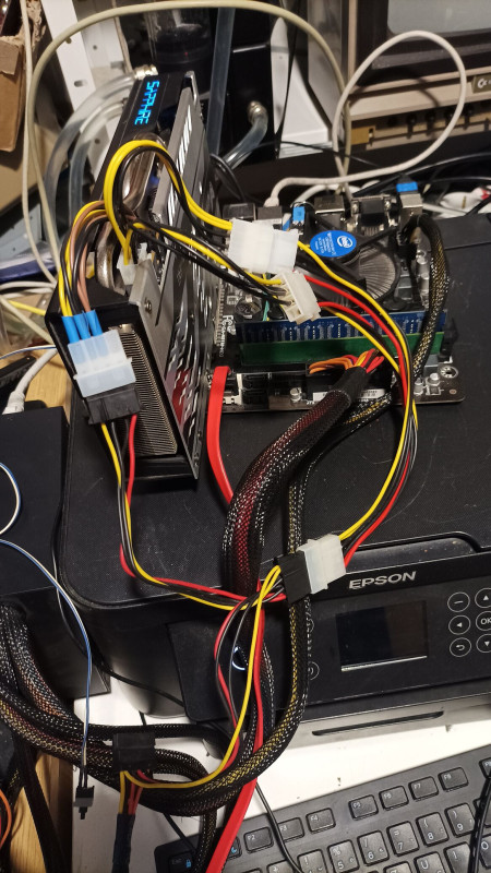 A kártya nem volt képes maxon menni, gondolom 12v leesett a kábelen.Teszt lényege annyi lenne hogy mennyire van túltervezve a molex és kábele.