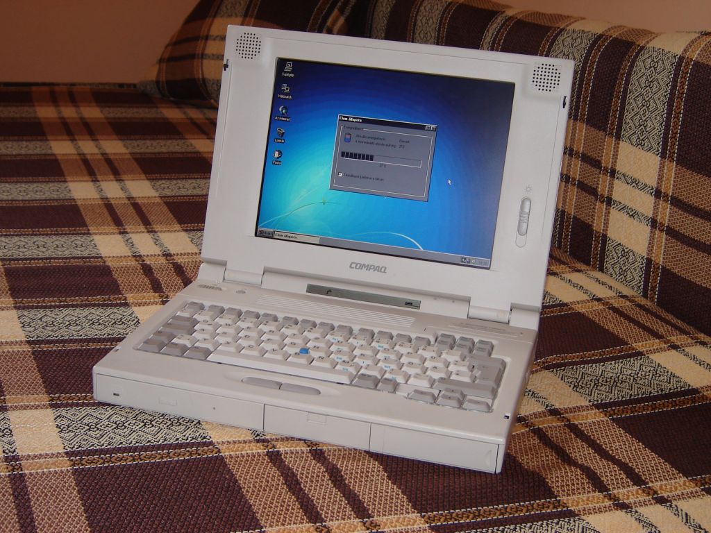 A képen egy Compaq LTE 5100 típusú hordozható számítógép látható, ami az alábbi specifikációkkal rendelkezik: