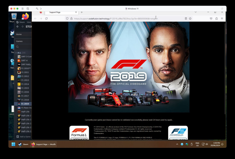 Gondoltam, rakok egy Steam-et a vmWare-ben futo ARM-os Windows 11-re, majd feltelepitem az F1-2019-et, es megprobalok jatszani vele. Hiaba adtam neki 8, majd 12 majd 16 giga RAM-ot, illetve noveltem a VRAM opciot is 2, majd 4 vegul a maximalis 8 GB-re, a jatek csak kekkepernyozott. Gondolom, hianyzik valami feature a vmWare GPU driverebol, vagy hianyzik valami feature a Windows x86 emulatorabol... 4-5 kekhalalos probalkozas es konfiuguralgatas utan, eljutottam oda, hogy mar el se indul a jatek. Megint belefutottam valamibe, ami azert jon elo, mert megvettem. A mar crackelt, warez peldanyt hasznalok valahogy mindig kimaradnak a drm koruli szivasokbol.
