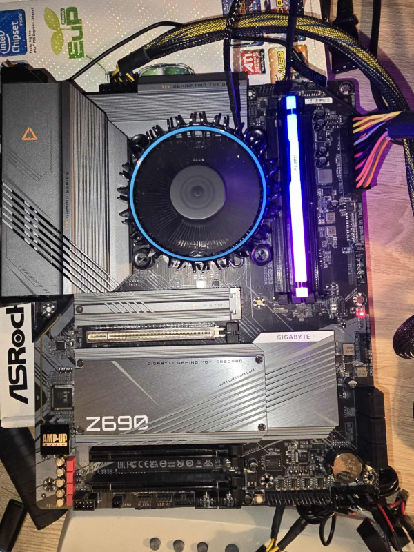 Gigabyte Z690 Gaming X DDR5Múlt héten elkapott a NAS építhetnék, előkotortam a fiókból és bár semmilyen LGA1700-as cuccom nem volt gondoltam azért ráindítok. A CPU led jelzett is ezért úgy döntöttem adok neki egy esélyt. Hétvégén megvettem a közelben lévő legolcsóbb LGA1700-as procit, egy használt i3-12100-at (27 000-ért ) és sikerült még múlt héten elcsípnem egy 2x8GB-os 6000-res Fury kitet 17200 ért, ez utóbbi ma érkezett meg. Csont nélkül indul a cucc