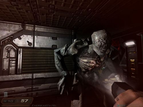 Ha már a 9800pro-ról beszélünk, és legutóbb a Voodoo3-ason szépen futó quake3 motoros gamma képkockáját linkeltem, most a 9800pro-t megizzasztó Doom3-ból egy kocka. 1024x768 30-50 fps között, akárcsak a legutóbb a Medal of Honor, de ez szép "high" beállításokkal. 6600GT-vel azért jobban futna, de ugye openGL-ben nvidiára optimalizálták a játékot, ahhoz képest nem rossz.