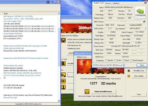 Amikor a specifikációkat gyűjtöttem, és a VGA-hoz értem, megdöbben ve láttam, hogy az MX440 az bizony 32 bites, amellett hogy 8x-os AGP-s.