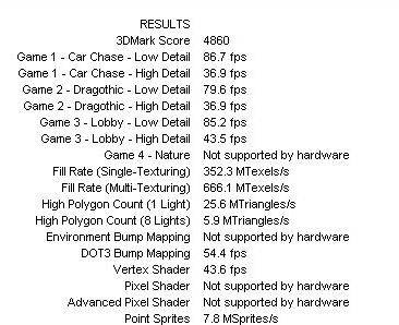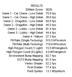 Dehogynem a Nature teszt DX8-as, ha az nem fut le az minimum -1-2 ezer pont, tehát DX7-es és DX8-as karik összehasonlítására nem igazán alkalmas 2K1, max ha DX8-as karin se futtatjuk le a Nature tesztet, vagy ha csak a DX7-es játéktesztek fps eredményeit hasonlítjuk össze, a pontszámot nem.