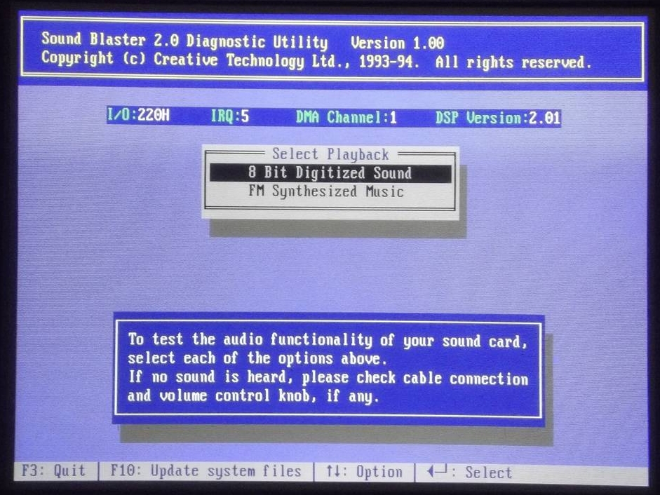 Biztos hogy megfelelően van telepítve a kártya ? PnP- s változatnál a config.sys- be kell a CTM is, melyet előtte a CTCU- val be kell lőni.
