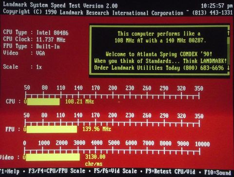 Huhú, Landmark ezeknél a 386-ba pattintós izéknél súlyos dolgokat mutat... Gondolom, annyi adatot használ, hogy simán befér még az SLC/DLC minimális L1 cache-ébe is. A 486SLC-m szerinte 2x olyan gyors, mint egy 386DX. Valójában persze sokkal inkább adja egy sima 386SX teljesítményét...