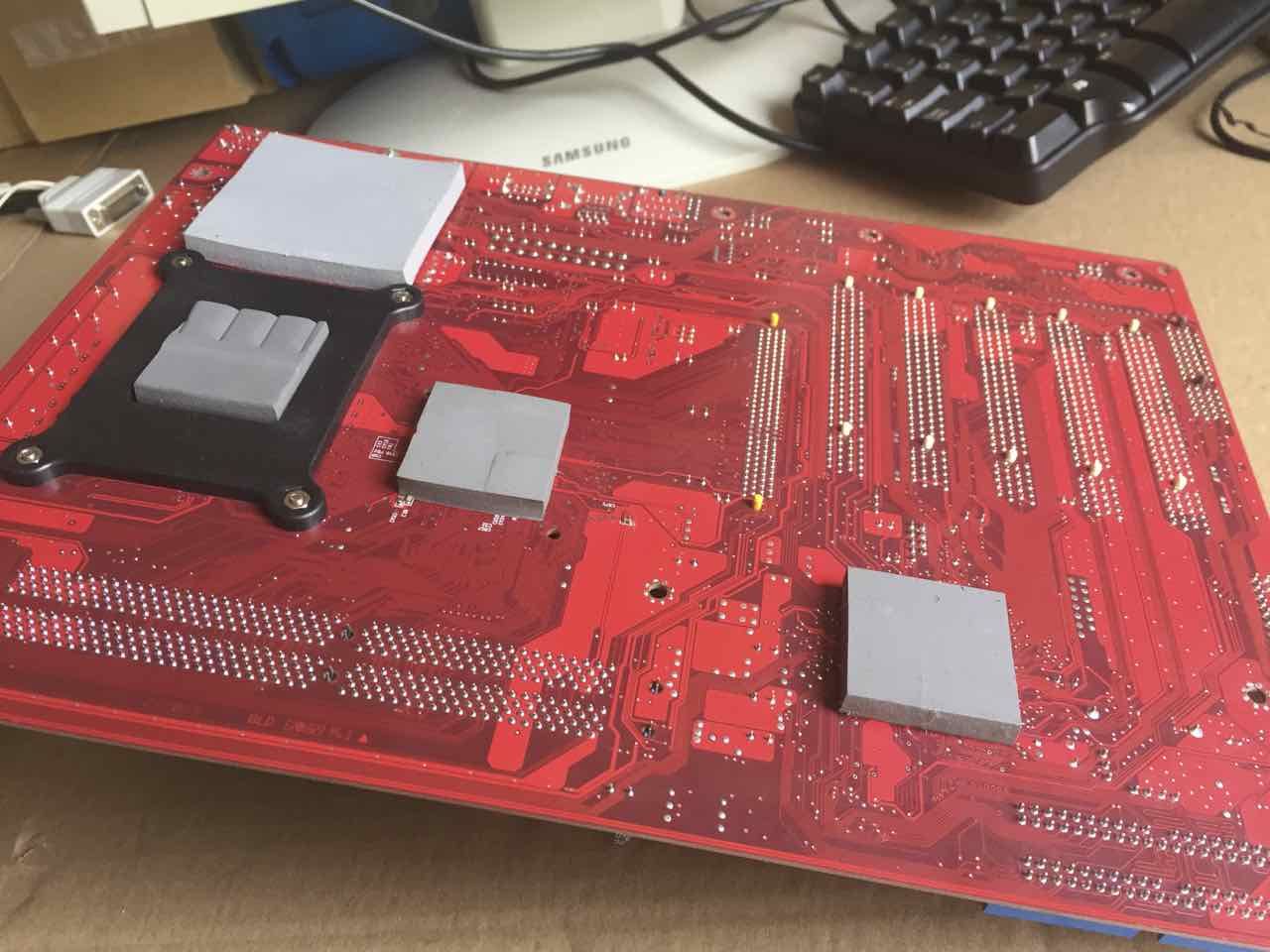 A melegedo alkatreszek / teruletek alá kerultek. Nem tudom mennyi ment at belole az alaplapot tarto fem talcara., de kivancsi lettem erre majd kiprobalom mennyire hatekony. Alapvetoen az otlet az tetszik. Ilyesmi nem is jutott az eszembe eddig. Bar ilyen ujnyi vastag hovezeto se lehet olcso.