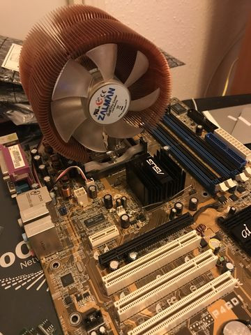 E8400-at vettem bele, tákoltam neki hűtést, vettem egy stock hűtőt, venti le, push pins (magyarul?) le és egy talán pentium D bordáira rá. Szép rézmagos félkilós tömb.