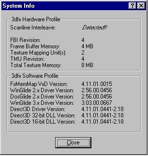 Aztan gondoltam egyet es ujra osszeraktam oket, kicsit megmozgatva a kartyakat a slot-okban, es azota nem fagy le a a kepernyo beallitasoknal az ablak, ha rakattintok a v2-1000 fulre.(#58916) DarthSun: Jogos, megnezem, hogy fut-e a 3dmark99 1024-en, akkor kiderul. Viszont google-ban rakerestem a voodoo2 sli system info-ra, es ott a kepek alapjan szinte minden hol 8/16MB-ot ir ki, ha az SLI aktiv. Egyebkent a innovison monster 3d II drivere van fent, a fastvoodooval fagyott az ablak, ha a fulre kattintottam, ahol a beallitasok voltak meg a gyarival is.