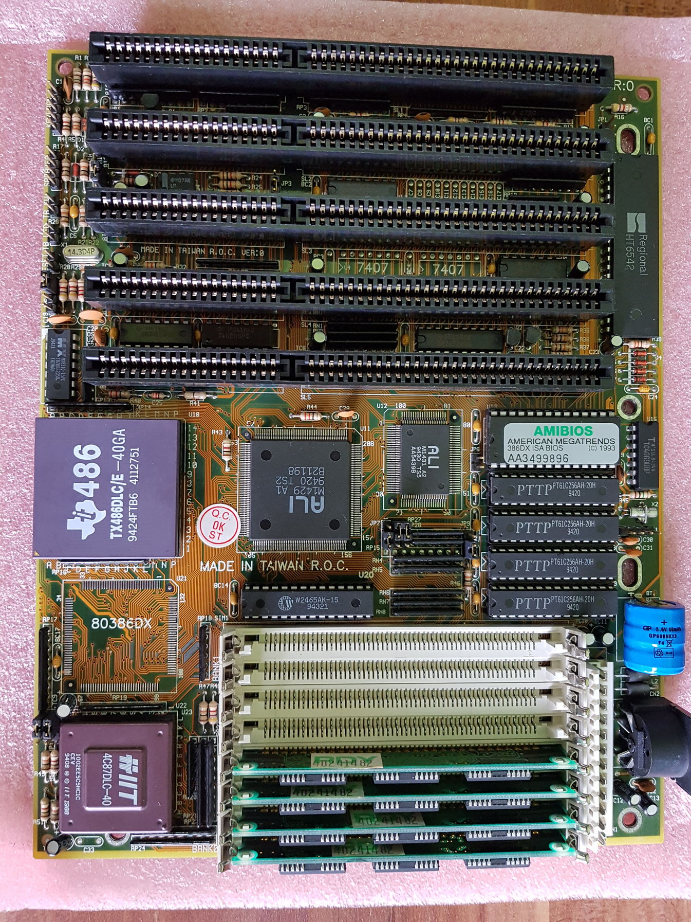 jah hulyen fogalmaztam, a kifolyasnal ezekre a lila elemekre gondoltam. anno nekem a 386osomban ilyen volt. ez az egyetlen alaplap, ami nem elemes, es begyujtottem. az elem lemerult, de semmi nyoma a folyasnak.