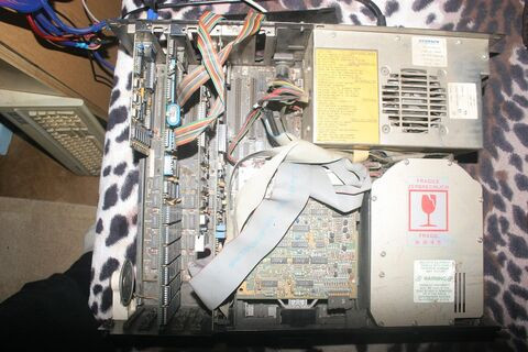 - Gyári MFM vezérlő, a kábelei végén egy irdatlan méretű (szintén teljes/dupla magas) MFM vinyóval.A meglepetés az, hogy a gép majdnem tökéletesen működött. Dátumot-időt nyilván elfelejtette a Quadcard, már az is haladás, hogy a Varta akku nem folyt rajta szerteszét. Hamarosan leforrasztom, az biztos. Viszont képes bootolni 5.25-ös lemezről és HDD-ről is, utóbbira végképp nem számítottam. Ami bámulatos, az a vinyó kapacitása, ekkora meghajtóm még sose volt, főleg ilyen tömeggel. Az ugyanis kolosszális 10 MB