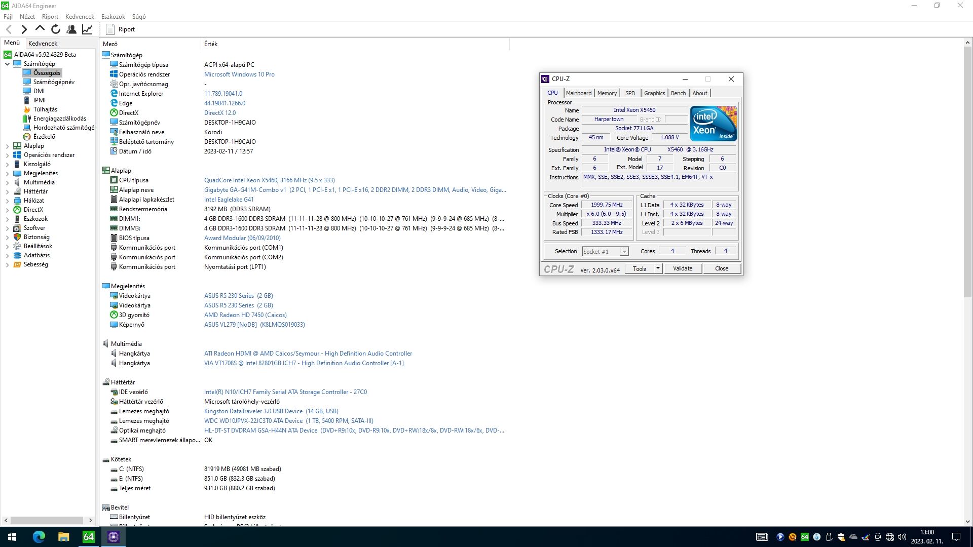 Épp most hétvégén fejeztem be az LGA 775 Xeon konfig fejlesztését, Windows 11-et toltam rá, kapott SSD-t és egy Quadro M2000 videokártyát. Böngészés, YouTube szépen megy. Persze nem úgy, mint a Precision M6800-as laptopomon, de bőségesen használható sebességű