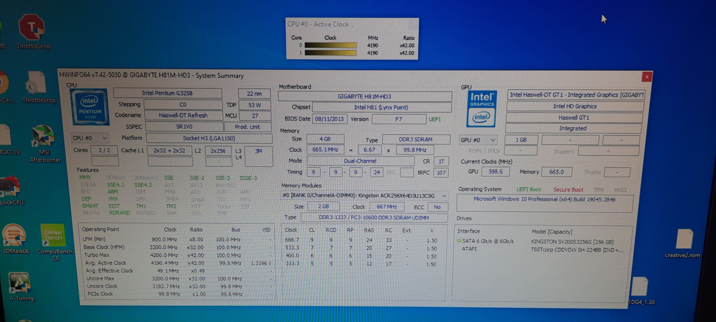 4600MHZ-et ment kis feszemeléssel, de 4GHZ környékéig feszemelés nélkül is elvolt. Jelenleg le van tárolva egy GTX960-as és 16GB RAM társaságában. -