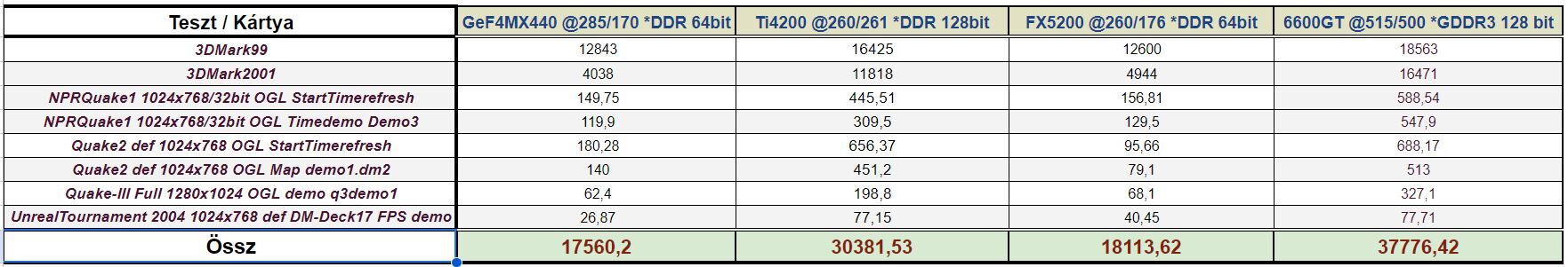 Ne feledjük a GeF4 MX440 egy picit órajel emelt, átcímkézett GeF2 MX400 64MB.