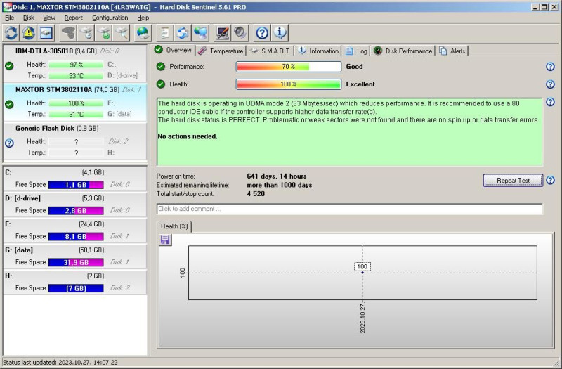 Maxtor STM3802110A 80GB 100% 4520start 641nap