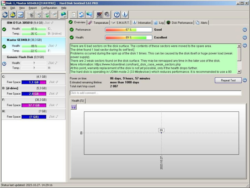 Maxtor 6E040L0 40GB 89% 6bad sector 2087 start 86nap